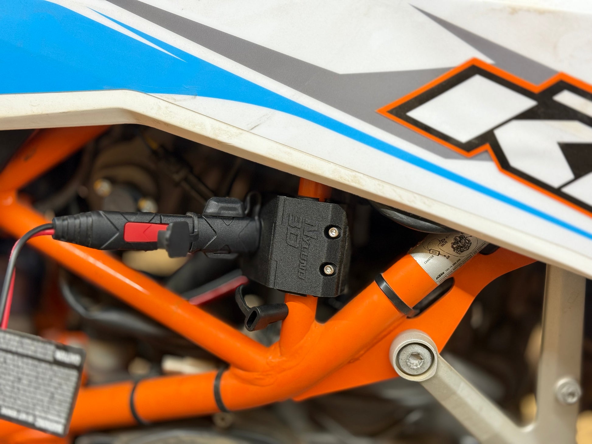 Stop those pesky dangling cables with this simple plug and play mount. Plugs directly into your existing fused battery tender lead and then clamps onto your sub frame to create a convenient, clean location to plug in your battery maintainer. Comes with connector mount, heat shrink tubing to cover and seal the connection between the 2 SAE connections and zip ties to keep it all secure. Can be mounted on either side and in multiple configurations to suit your specific needs.